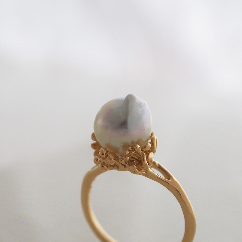重なり合う植物のシルエット、マットゴールドの鈍い輝き、内包物のある天然石の世界。